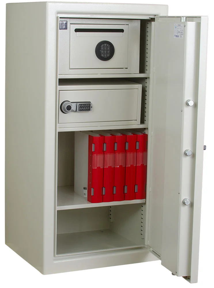 Compact under-counter models accept cash bags through sealed deposit drawers, while larger cabinets add adjustable shelving, lockable compartments, and fire-rated insulation for sensitive documents. Reinforced bodies, 12 mm door plates, and three-way locking bolts resist forced entry attempts, and pre-drilled anchoring points with supplied bolts secure each safe to floors or walls.